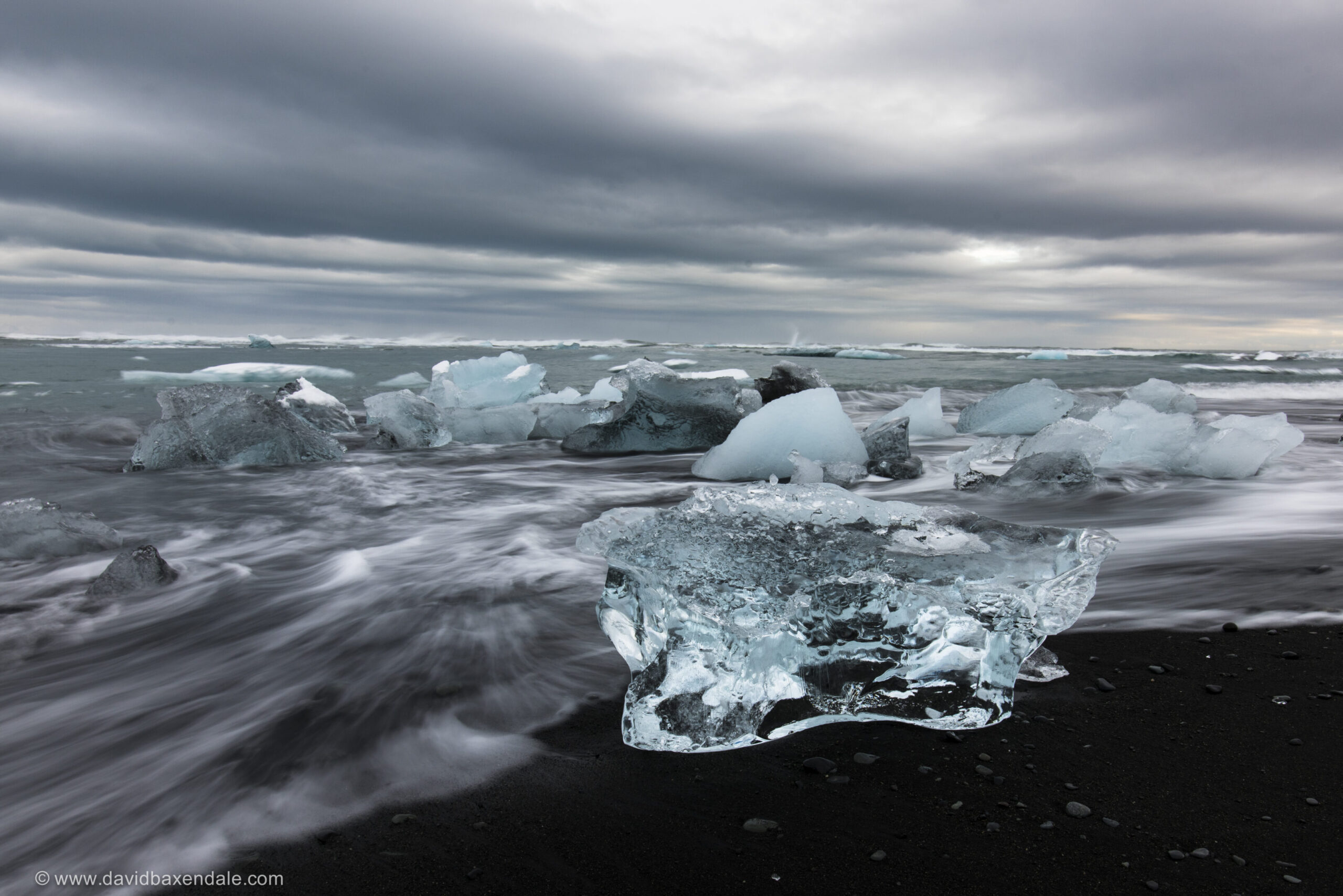 pieces of ice on black sand in Iceland
