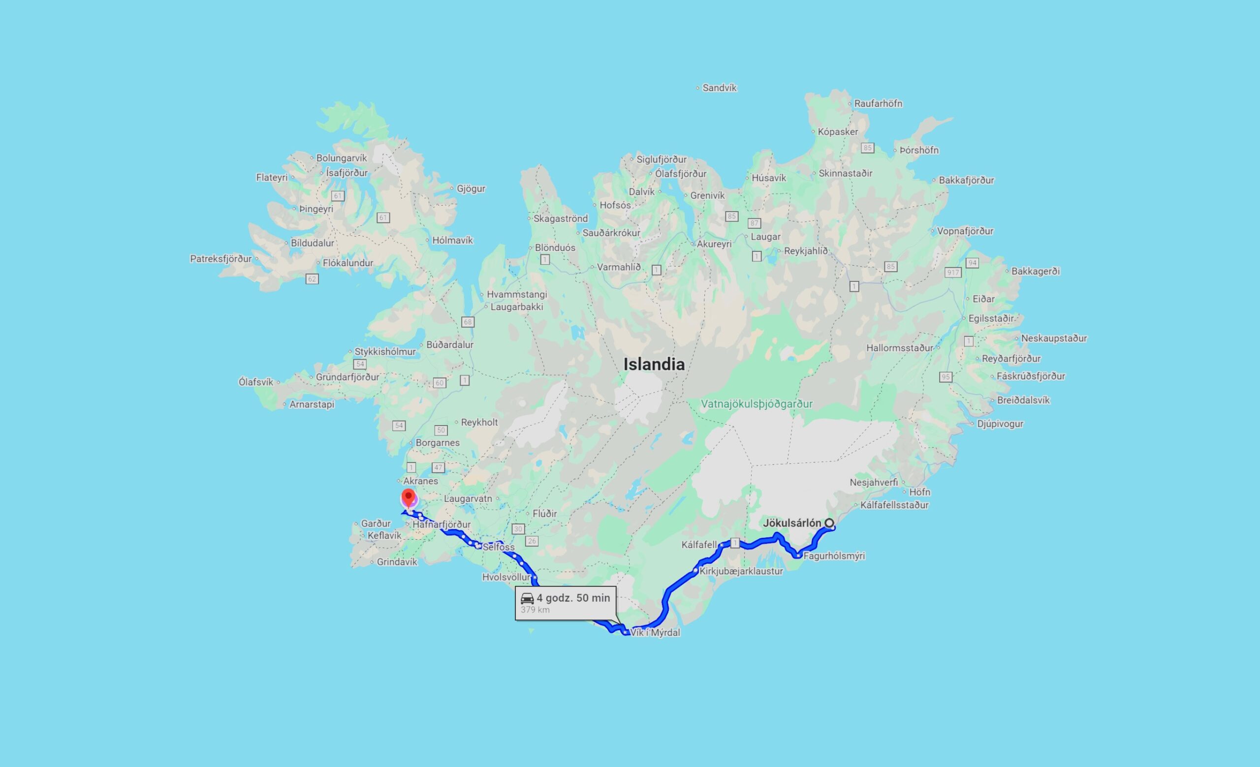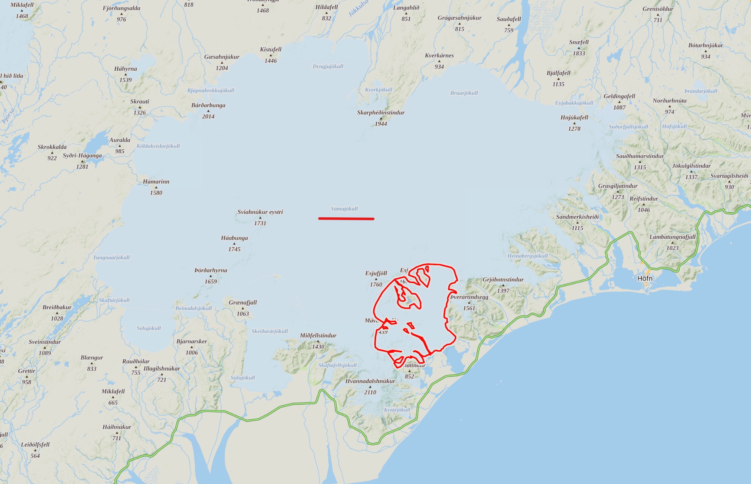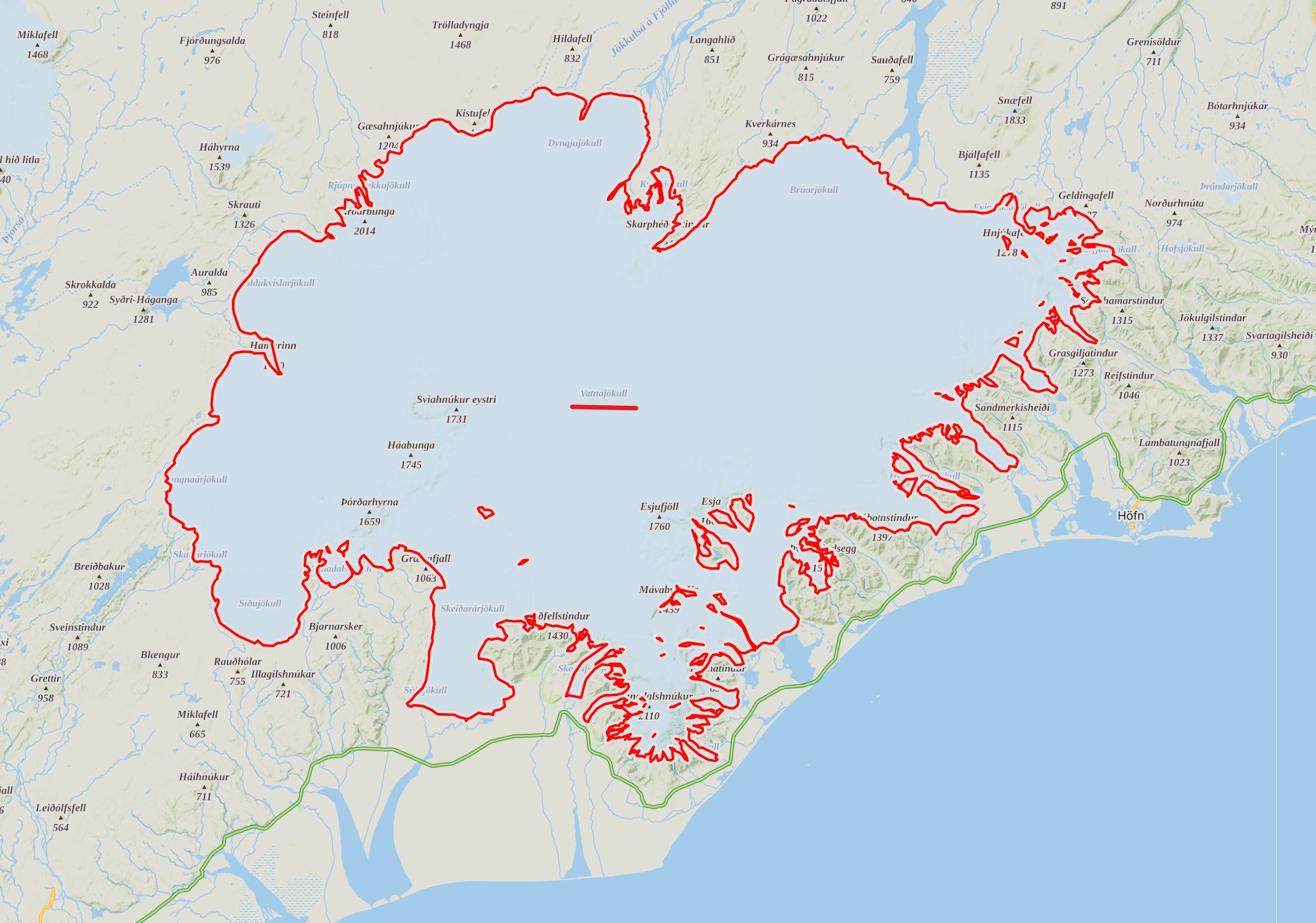 Vatnajökull glacier, source mapy.com.